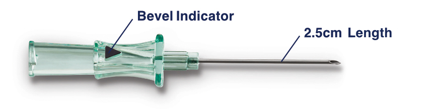 Kits include a premium 21G x 2.5cm needle, designed for precision and featuring a bevel indicator on the hub. Separate sterile needles, including X Sharp®, are also available.