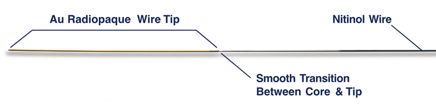 Kits include an .018” x 45cm guidewire with nitinol core and gold radiopaque tip (shown below) or stainless tip and core. Separate sterile guidewires in additional lengths are also available.