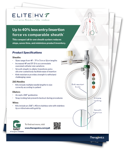 1. When tested against a comparable sheath (test data on file at Galt Medical Corporation)